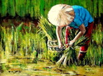 2009Vrouw die rijst aan het poten is